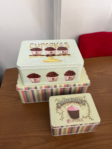 قوطی فلزی مستطیل ست سه تایی طرح کاپ کیک