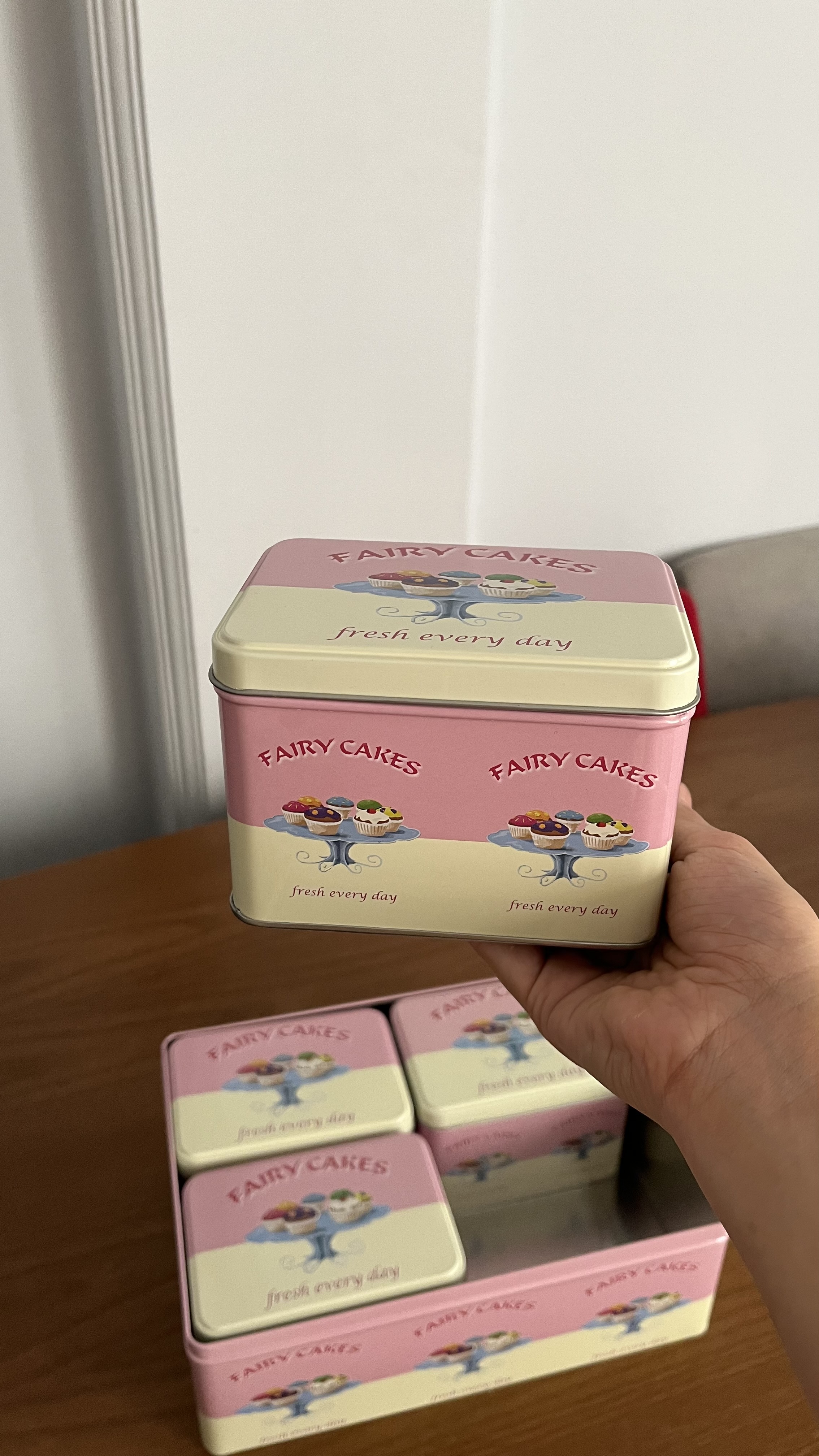 قوطی فلزی پنج تکه کاپ کیک صورتی کرم