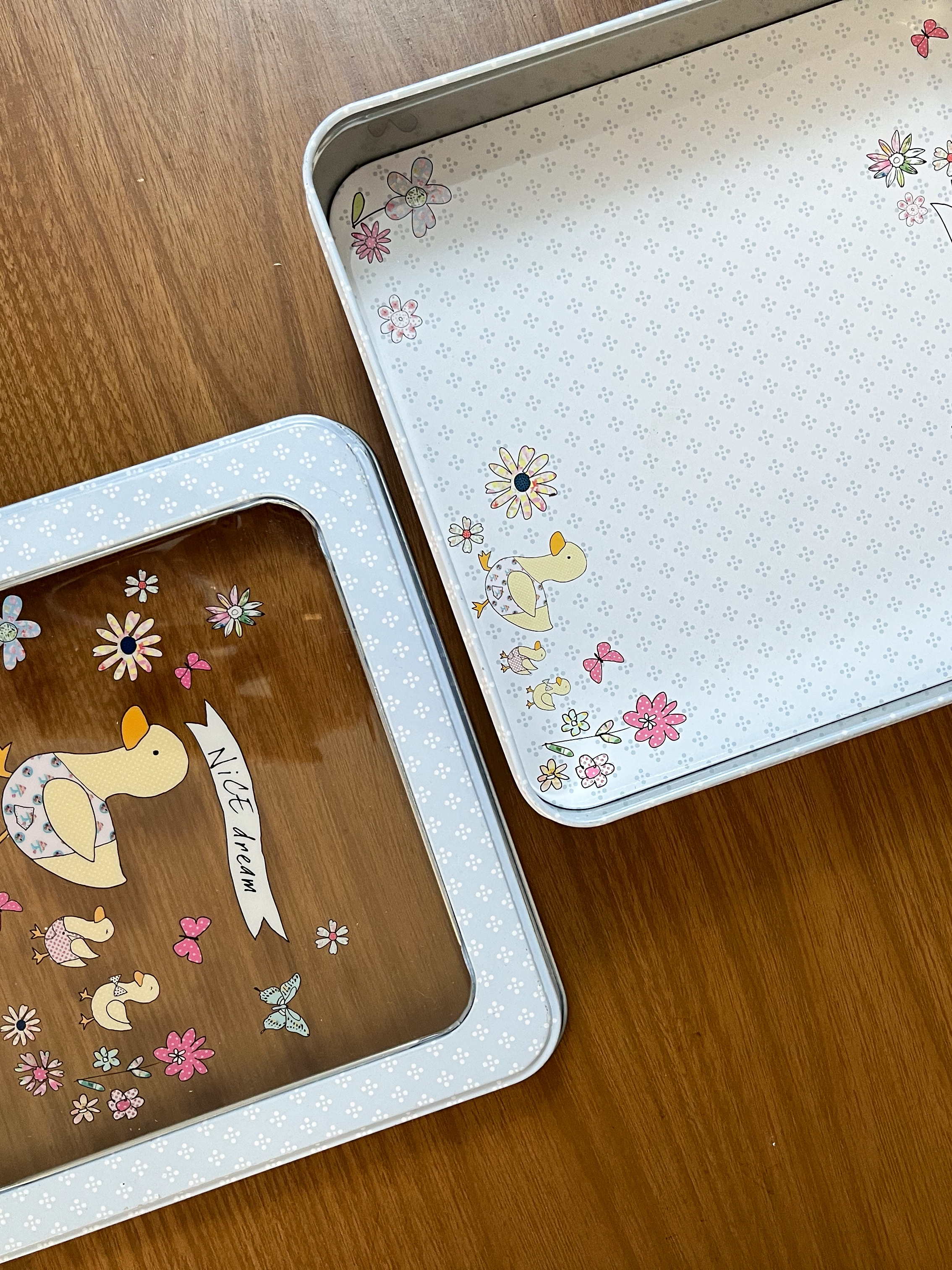 قوطی فلزی مربع در طلقی بزرگ طرح اردک